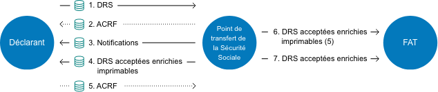 Le déclarant est mis au courant au moyen d'un fichier de notification créé le 30 avril 2007. Ce fichier contient les 3 notifications. Le point de transfert de la sécurité sociale envoie également, sous le format pdf, les deux déclarations DRS acceptées. Après avoir reçu le fichier de notification, le déclarant renvoie un accusé de réception.
