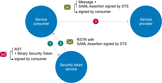 Met een SAML-token verkregen van STS kan de consumer gedurende één uur verschillende business webservices oproepen.
