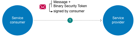 - wsse:BinarySecurityToken met het consumer X.509v3-certificaat in base64-notatie;
